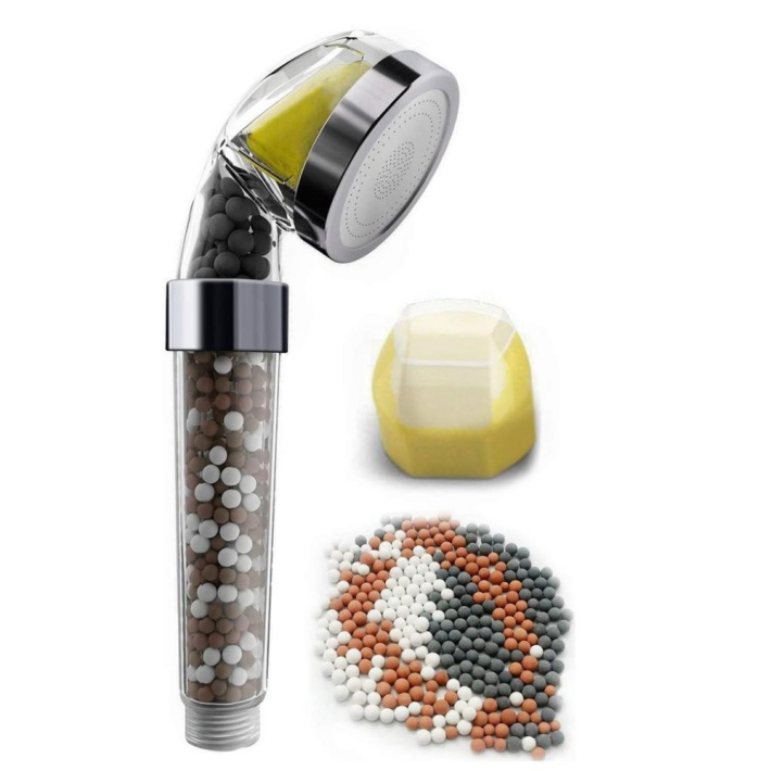 - zestaw zawiera: 1x ręczna słuchawka prysznicowa z filtrem, 1x wkład cytrynowy, 1x folia bąbelkowa, w tym 4 typy kulek filtracyjnych