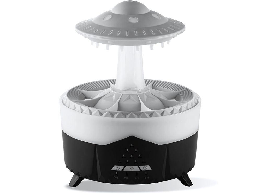 Nawilżacz powietrza i dyfuzor zapachu w kształcie UFO to nowoczesne urządzenie, które łączy funkcje nawilżania, aromaterapii i lampy LED oraz nadaje Twojemu wnętrzu niepowtarzalną atmosferę. Urządzenie posiada wbudowany efekt "deszczu", który imituje delikatny opad wody i tworzy relaksującą atmosferę. Dzięki funkcji dyfuzora możesz dodać swoje ulubione olejki eteryczne i wypełnić pomieszczenie przyjemnym zapachem.
