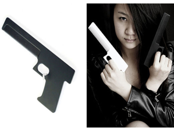 Nie masz dosyć zwykłych i nieatrakcyjnych grzebieni? Kup grzebień w kształcie pistoletu. Na pierwszy rzut oka może przypominać rewolwer przy pasie, ale w rzeczywistości jest to grzebień, który pomoże Ci ujarzmić rozczochrane włosy. Ten grzebień będzie również oryginalnym prezentem dla wszystkich miłośników strzelania.