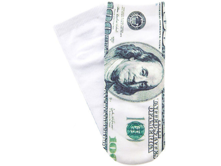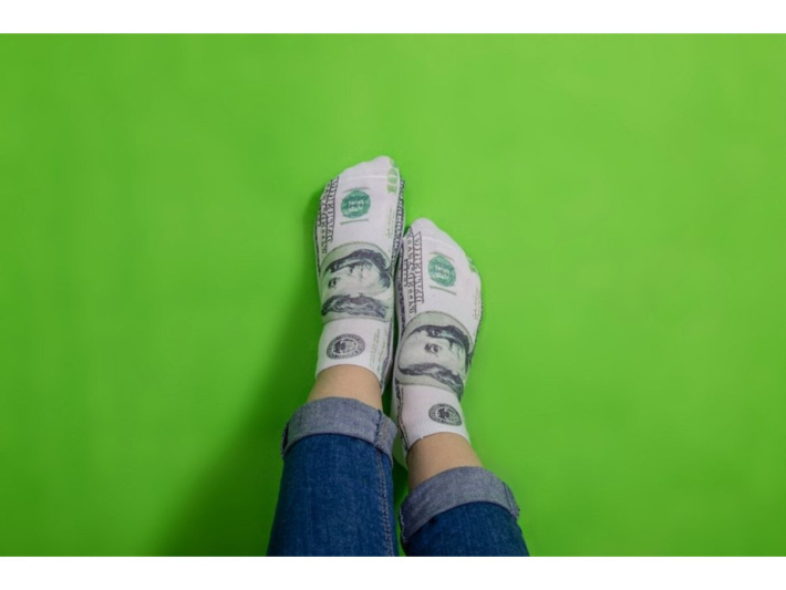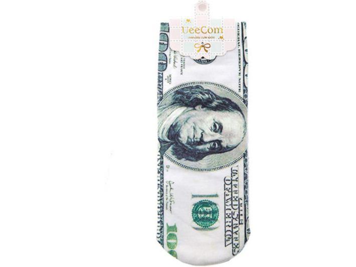 Oryginalne skarpetki, w których poczujesz się jak prawdziwy bogacz. Skarpetki dolar wyglądają jak prawdziwy banknot dolarowy. Poczuj ten moment, kiedy możesz „zrobić” skarpetki z pieniędzy. Bawełniane stylowe skarpetki są przyjemne i doskonale pasują jako luksusowy dodatek lub jako zabawny i stylowy prezent.