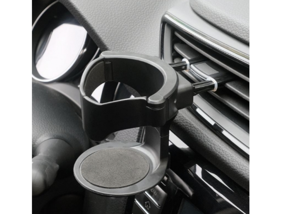 Uchwyt na napoje do samochodu zamocowany na kratce wentylacyjnej. Funkcjonalny uchwyt na kubek do samochodu to rozwiązanie, które pozwoli Ci wygodnie i bezpiecznie przewozić napoje, zwłaszcza te otwarte. Regulacja głębokości umożliwia pewniejsze mocowanie uchwytu do kratki.