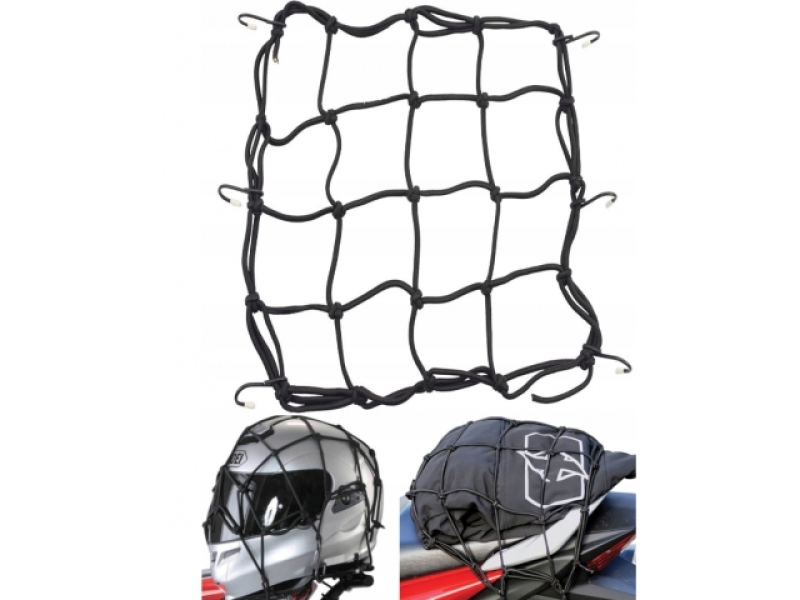 Siatka do mocowania i transportu kasku i bagażu na motocyklu, quadzie lub skuterze. Siatka jest wykonana z mocnego, wytrzymałego i elastycznego materiału. Jest to świetne rozwiązanie dla każdego motocyklisty.