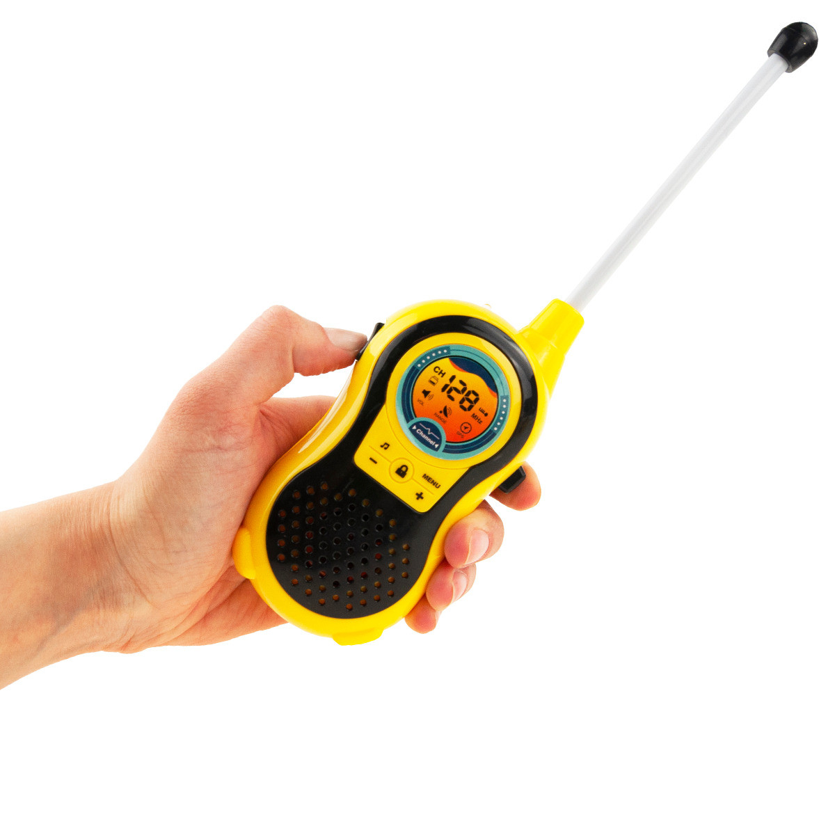 Walkie-talkie jest prostym, wygodnym i łatwym w obsłudze przenośnym komunikatorem. Po włączeniu krótkofalówki wystarczy nacisnąć przycisk i mówić. Po zakończeniu wiadomości przycisk należy zwolnić i czekać na odpowiedź. Doskonale nadaje się do gier na zewnątrz w ogrodzie, na plaży lub w lesie. Zabawka jest wyposażona w teleskopową wysuwaną antenę i klips do paska.