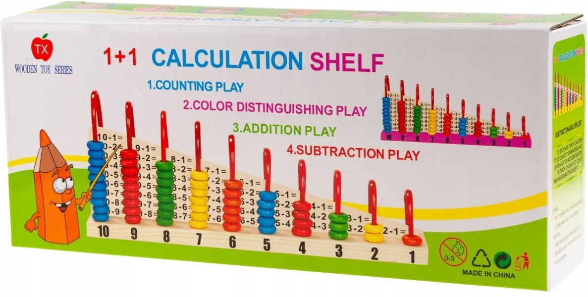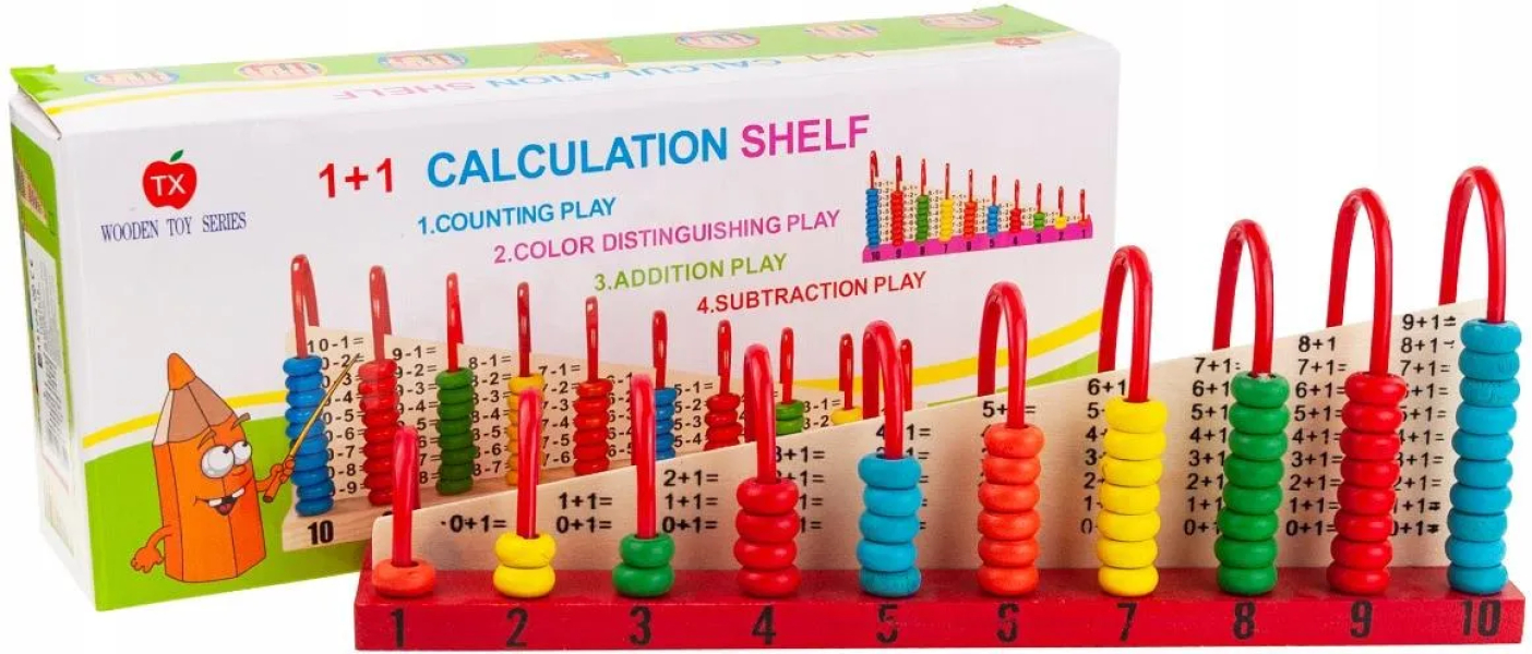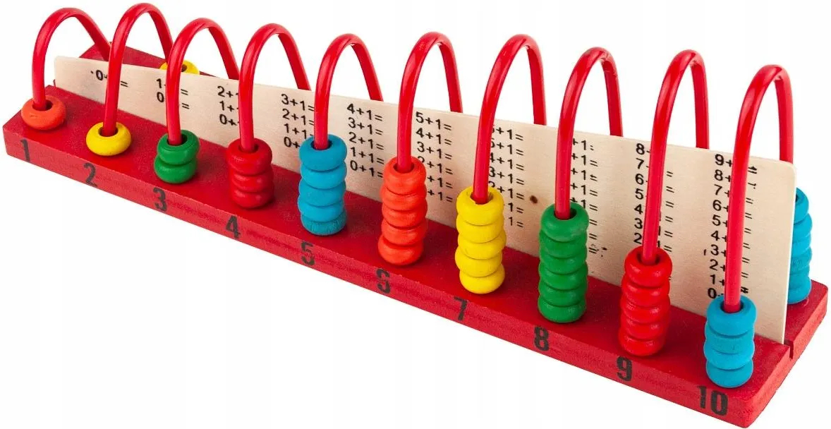 - Kolorowy zestaw liczb i koralików umożliwiający sprawdzenie poprawności obliczeń.