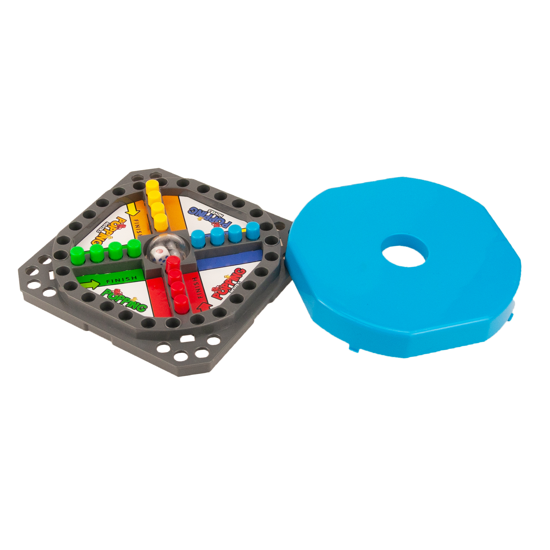 - Gra zawiera rozkładaną planszę, trasę do gry z miejscami na pionki i kopułę z wbudowaną kostką.