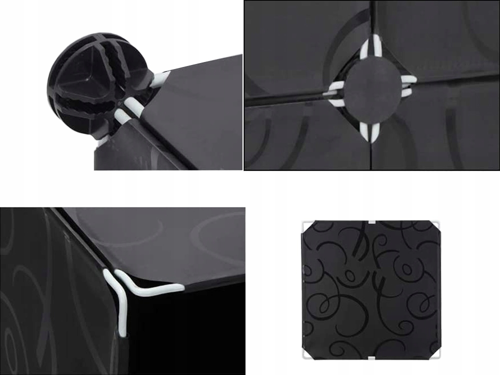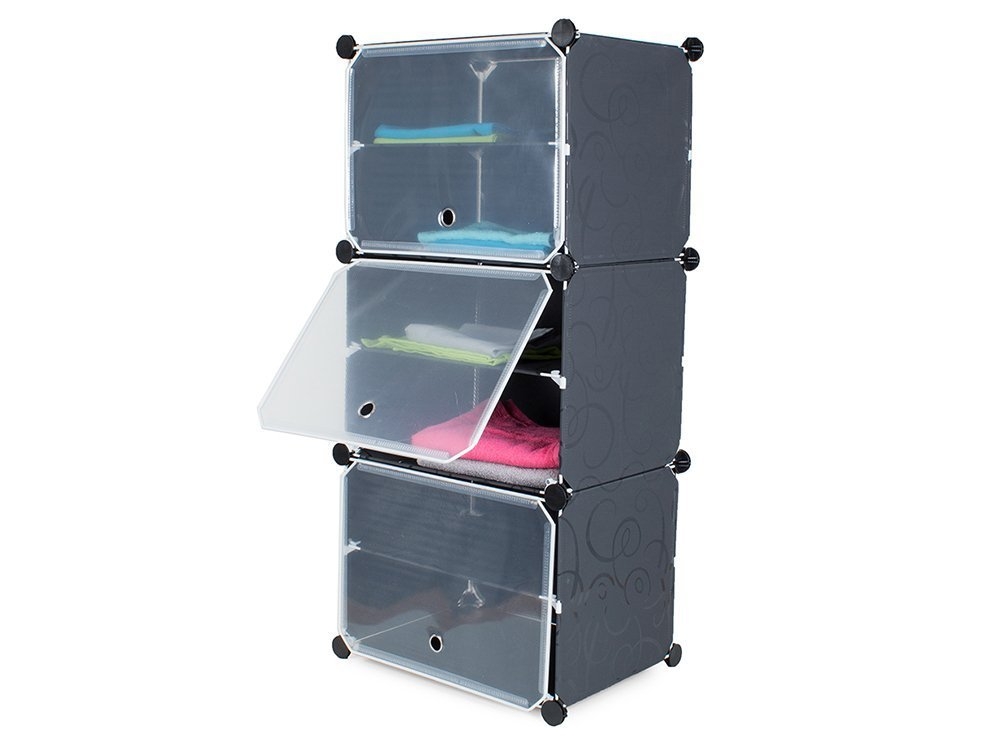 Ma 3 segmenty, które można ustawiać jeden na drugim lub umieścić obok siebie, w zależności od potrzeb i dostępnej przestrzeni. Jest lekka i stabilna. Dzięki modułowej konstrukcji jest bardzo łatwa do złożenia. Wystarczy połączyć metalowe ramy z łącznikami. Szafka ma przezroczyste okienka, aby szybko znaleźć to, co potrzebujesz wyjąć, i można je również zamontować tak, aby otwierały się w górę lub w dół. Materiał, z którego jest wykonana szafka, jest wodoodporny i łatwy do czyszczenia.