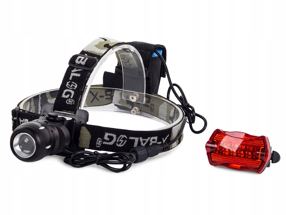 Lekka i praktyczna. Jej konstrukcja zapewnia stabilność i zapobiega zsunięciu się latarki z głowy. Ma także 2 elastyczne i regulowane paski oraz ładowalną baterię, która jest podłączana do latarki i mocowana na tylnej części głowy. Do zasilania latarki zastosowano wysokiej jakości baterie litowo-jonowe/ogniwa 18650, które umożliwiają długi czas działania latarki.