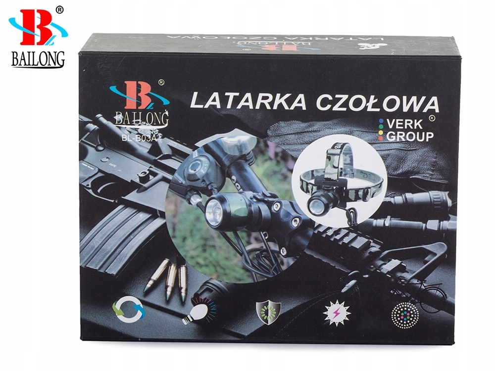 Przednia latarka Bailong® model B03A została zaprojektowana do użytku taktycznego. Mogą ją używać jednostki mundurowe, wojsko, myśliwi, miłośnicy przyrody lub do użytku domowego. Umożliwia wykonywanie dowolnej pracy w warunkach wymagających oświetlenia bez pomocy rąk, które trzymałyby źródło światła.
