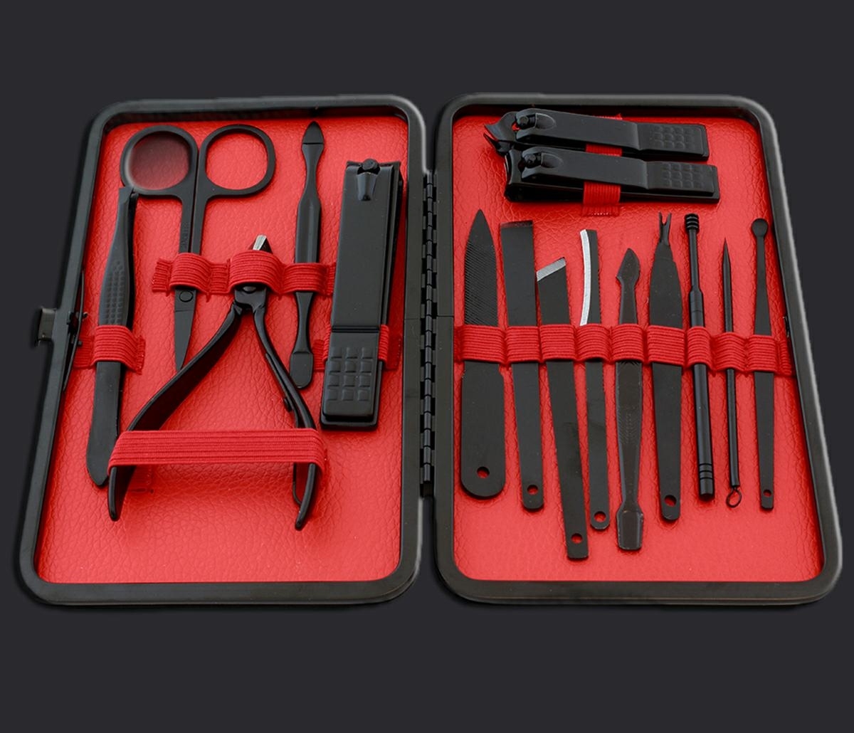 Wyjątkowo praktyczny zestaw narzędzi do pedicure, manicure i innych korekt paznokci. Wyposażony w 16 elementów, takich jak nożyczki, cążki, obcinaczki i pilniczki. Wszystkie narzędzia są wykonane z wysokiej jakości stali nierdzewnej, bezpieczne w kontakcie ze skórą. Całość zapakowana w estetycznym zamykanym etui, które ułatwia przenoszenie i przechowywanie zestawu.