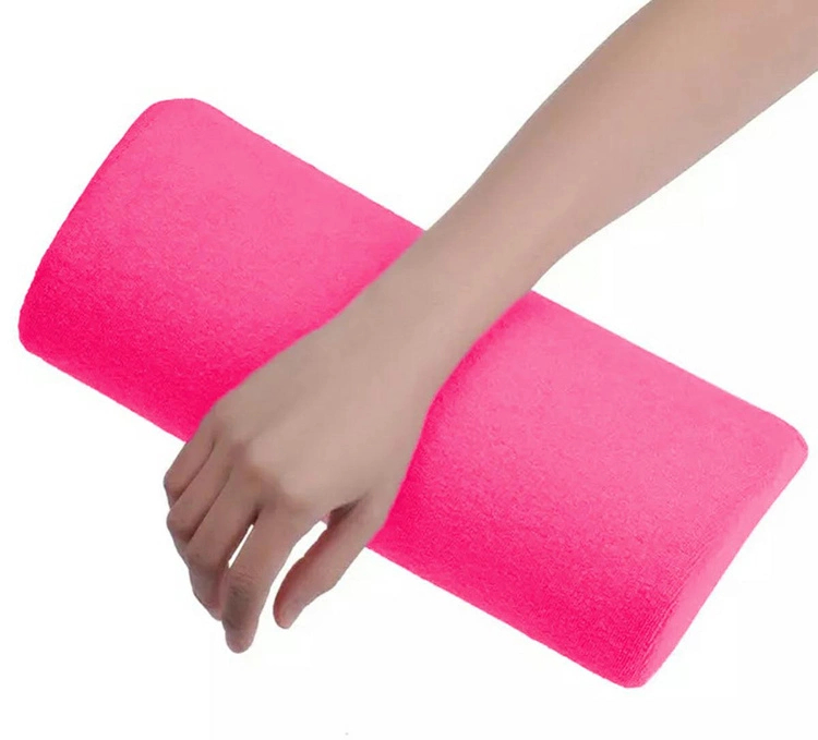 - Poduszka do manicure w estetycznym różowym pokrowcu frotte.