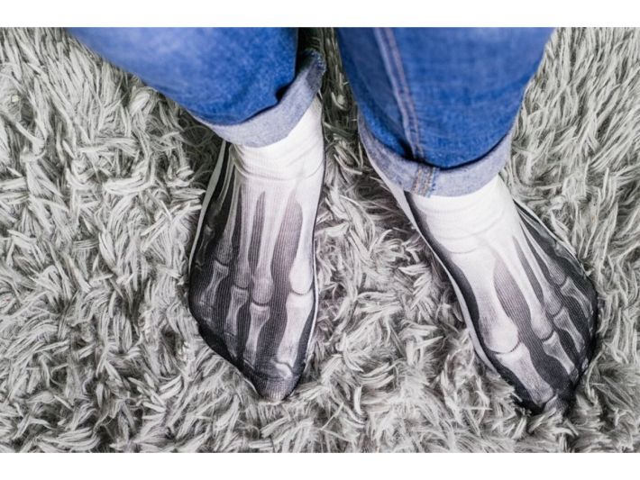 Jakbyście chodzili nieustannie z nogami pod rentgenem. Te zabawne skarpetki szkielet przypominają Wam, jak wyglądałyby Wasze nogi bez skóry i mięśni. Nadruk rentgenowski szkieletu może na pierwszy rzut oka przestraszyć, ale przy drugim spojrzeniu rozbawić. Bawełniane i wygodne skarpetki ucieszą każdego dowcipnisia. Możecie je wykorzystać na Halloween, ale i na każdą inną okazję. Skarpetki szkielet będą wygodnym dodatkiem do Waszej garderoby.