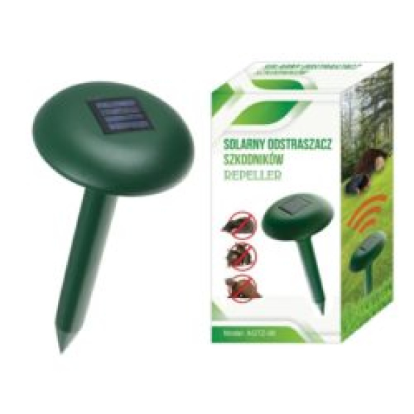 Solarny odstraszacz wykorzystuje zasadę ultradźwiękowych wibracji: Odstraszacz emituje ultradźwiękowe fale w zakresie częstotliwości 400 - 1000 Hz, które są niesłyszalne dla ludzi i zwierząt domowych. Te fale drażnią narządy słuchu i system nerwowy pospolitych szkodników w ogrodach, takich jak krety. Co 40 sekund urządzenie emituje ultradźwiękowe fale, które tworzą wibracje w górnej warstwie gleby. Te impulsy odstraszają szkodniki. Urządzenie jest wyposażone w panel solarny, który przekształca światło słoneczne w energię magazynowaną w wbudowanej baterii. Dla optymalnej wydajności zaleca się umieścić urządzenie w jak najmocniej nasłonecznionych miejscach.