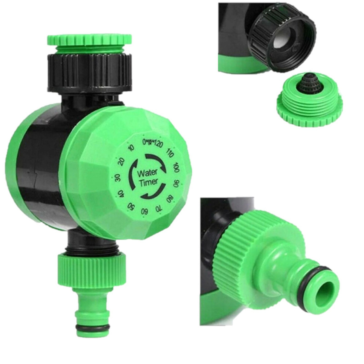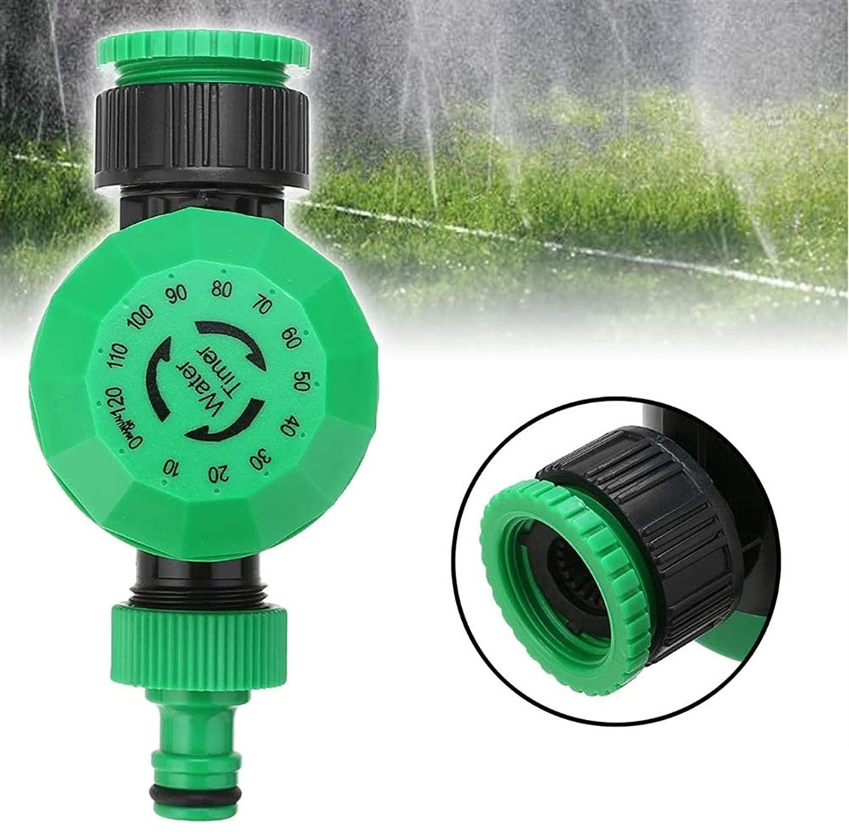 - Zegar z możliwością obracania wskazówki w dowolnym kierunku bez ryzyka uszkodzenia mechanizmu umożliwia ręczne ustawianie czasu podlewania do maksymalnie 120 minut.