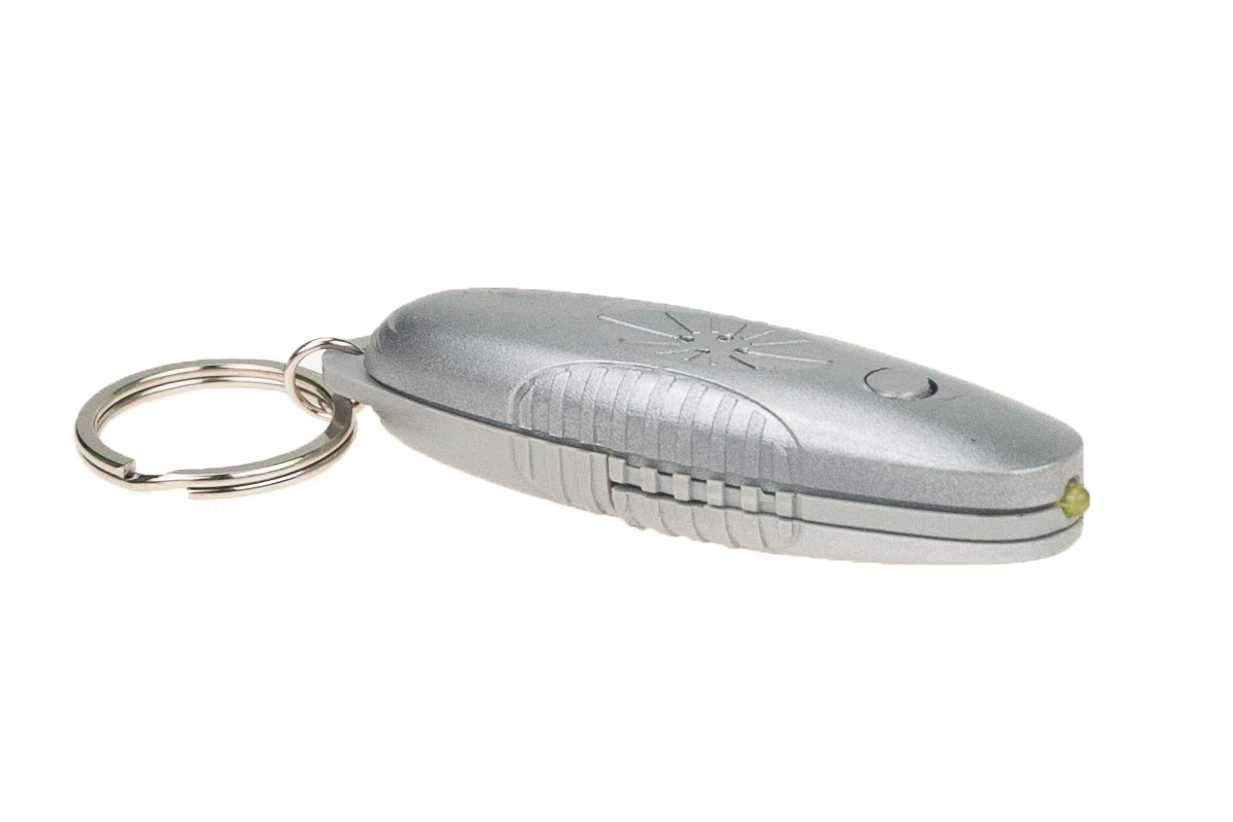 - Dwa przyciski: Jeden przycisk aktywuje lampkę, drugi aktywuje funkcję odstraszacza (po włączeniu słychać cichy dźwięk ultradźwięku).