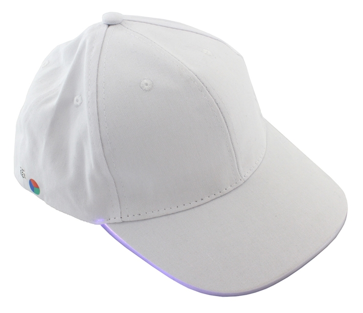 czapka / czapka baseballowa wyposażona w diody LED RGB emitujące kolorowe światło. Doskonały gadżet ułatwiający wieczorne spacery, bez konieczności trzymania w rękach tradycyjnej latarki. Dobra i energooszczędna alternatywa dla ciężkiej czołówki lub klasycznych źródeł światła!