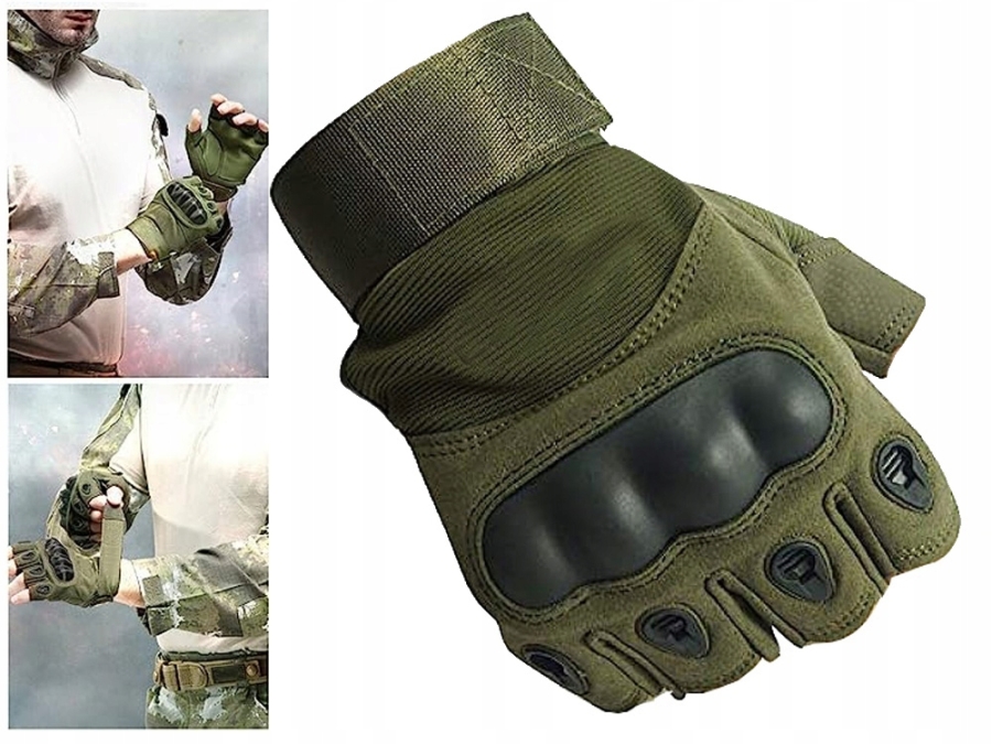 Rękawice taktyczne bez palców chronią ręce przed otarciami, skaleczeniami i innymi urazami, a jednocześnie umożliwiają pełną ruchliwość palców. Wykonane są z trwałych materiałów zapewniających ochronę i komfort noszenia. Mają zastosowanie także poza wojskiem. Mogą być używane w różnych sytuacjach, takich jak jazda na rowerze, wspinaczka, sporty strzeleckie, ochrona osobista lub prace mechaniczne, gdzie wymagana jest zręczność i czułość palców.