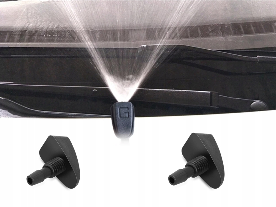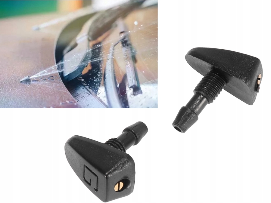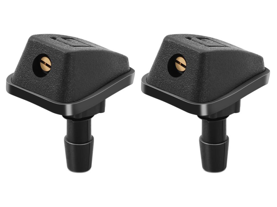 Zestaw dwóch dysz spryskiwaczy przedniej szyby ma regulację 360 stopni natrysku, wyposażony w specjalne otwory, które można regulować za pomocą płaskiego śrubokręta.