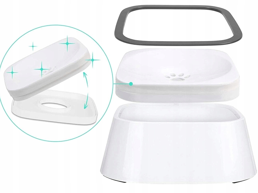 Miska na wodę dla psów i kotów jest idealnym rozwiązaniem przeciw rozlewaniu wody. Miska ma podwójne zabezpieczenie przed rozlewaniem wody, które utrzymuje podłogę stale suchą.