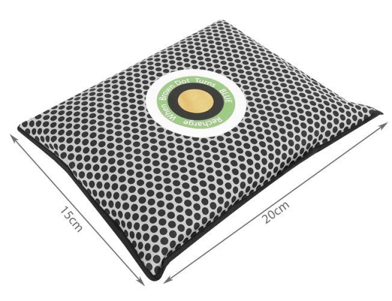 ŁATWE UŻYCIE – w środku znajduje się pochłaniacz wilgoci z niebieskim wskaźnikiem wilgoci. Jeśli ma kolor pomarańczowy, oznacza to, że jest suchy i gotowy do użycia. Kiedy zmieni kolor na niebieski, oznacza to, że jest napełniony wilgocią i trzeba go wysuszyć. Można go wysuszyć np. w kuchence mikrofalowej, dzięki czemu zgromadzona wilgoć się odparuje. Po wysuszeniu wskaźnik zmienia kolor na pomarańczowy, co oznacza, że jest gotowy do użycia.