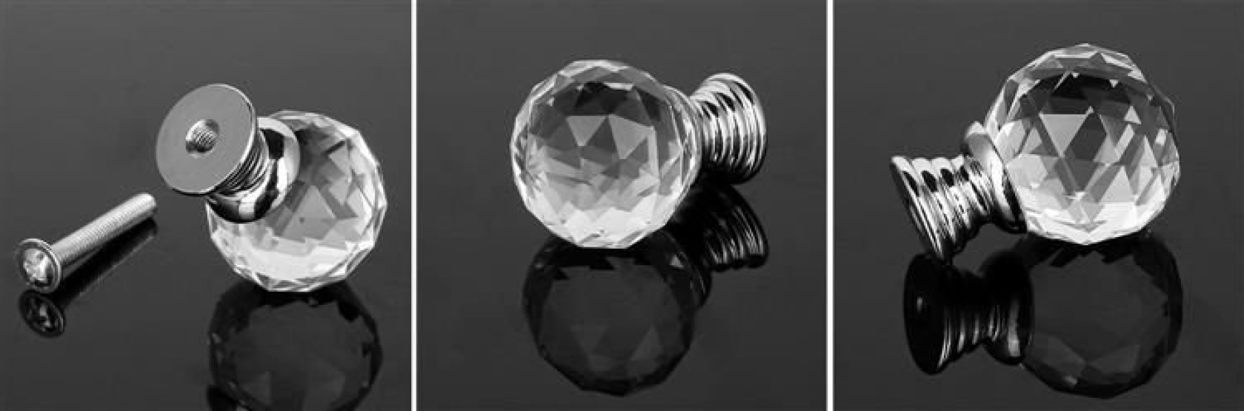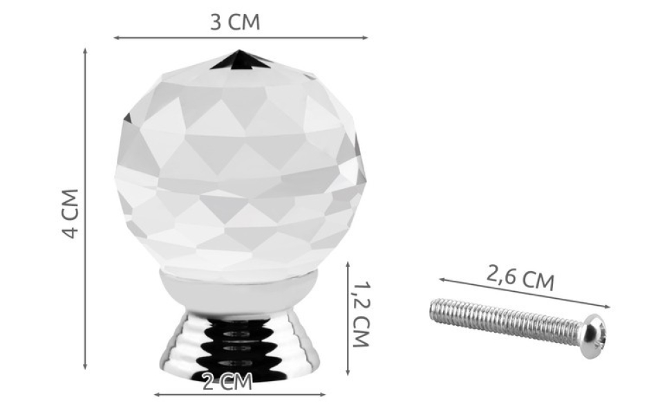 - KRYSZTAŁ – gałka wykonana z wysokiej jakości kryształu k9. Delikatna, gładka powierzchnia z wyraźnymi krawędziami. Produkt jest pokryty chromem.
