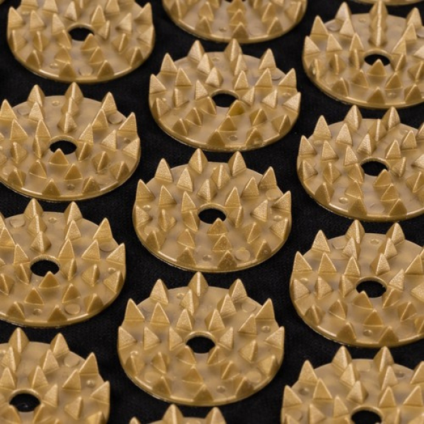 - SPECJALNIE ZAPROJEKTOWANE KOLCE - kolce są wykonane z materiału HIPS. Cechują się prostym kształtem. Są ostre, ale dosyć łagodnie zakończone, aby były bezpieczne dla Twojej skóry. Na jednej rozecie jest aż 27 kolców, a na macie i poduszce jest w sumie 13 743 punktów nacisku. Nacisk kolców poprawia krążenie krwi w całym ciele i zwiększa przepływ limfy. Nie obawiaj się zatem zaczerwienionej skóry i kolców po użyciu, to naturalna reakcja organizmu.