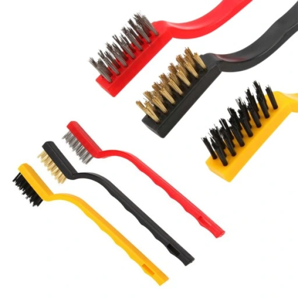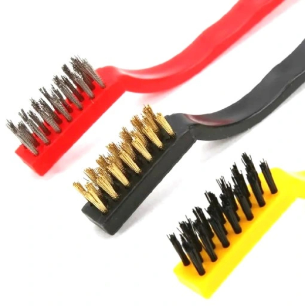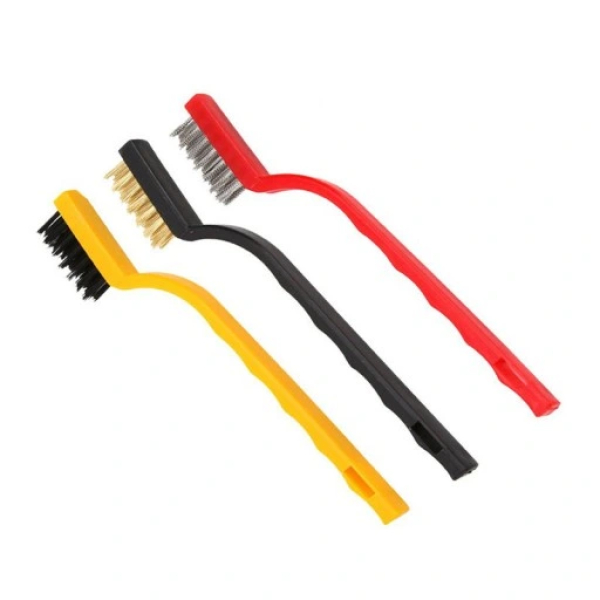 - Materiał: plastik (uchwyt) + stal / mosiądz / nylon (szczotki)