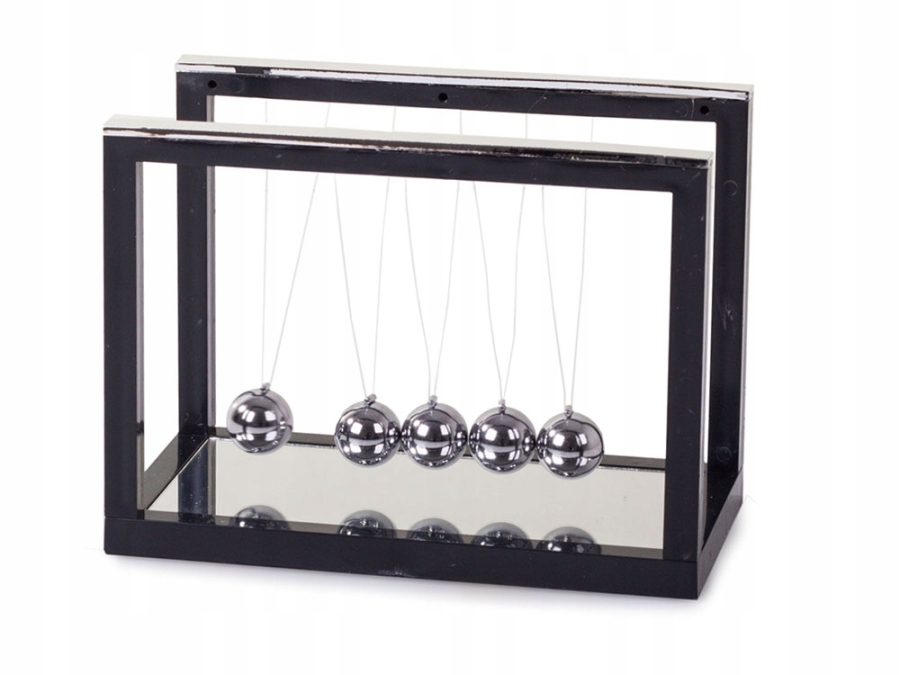 Kiedy jedna kulka zostaje cofnięta i puszczona, uderza w pozostałe, a ostatnia kulka odbija się do prawie tej samej wysokości. Dzieje się tak, ponieważ zderzenia kulek są elastyczne, a ich energia kinetyczna i pęd są zachowane.