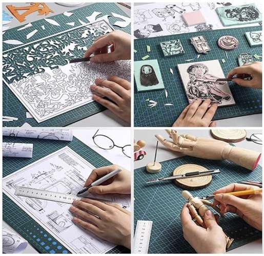 Ta specjalna, samonaprawiająca podkładka jest wyposażona w kilka specjalnych warstw, wykonanych z elastycznego materiału, który działa jako bariera dla ostrza tnącego. Głębokość cięcia jest zminimalizowana, a po zdjęciu materiału z podkładki jej powierzchnia wraca do pierwotnego stanu. Dzięki temu systemowi można użyć samonaprawiającej podkładki wielokrotnie bez najmniejszej utraty jakości. Jednocześnie podkładka jest wykonana z antypoślizgowego materiału, dzięki czemu przy pracy z ostrzem nie będzie się przesuwać, co zapewnia nie tylko maksymalną precyzję pracy, ale również potrzebne bezpieczeństwo. Do innych zalet tej podkładki należą specjalne, drukowane miarki, pomocnicze linie i cyfry, które są przydatne przy precyzyjnej pracy, z czego każda strona ma inny nadruk. Ta samonaprawiająca podkładka jest świetna dla artystów, projektantów, miłośników twórczości artystycznej i każdego, kto regularnie pracuje z narzędziami tnącymi i potrzebuje wytrzymałej i jakościowej powierzchni do precyzyjnego cięcia. Podkładka doskonale też sprawdzi się w czynnościach modelarskich.