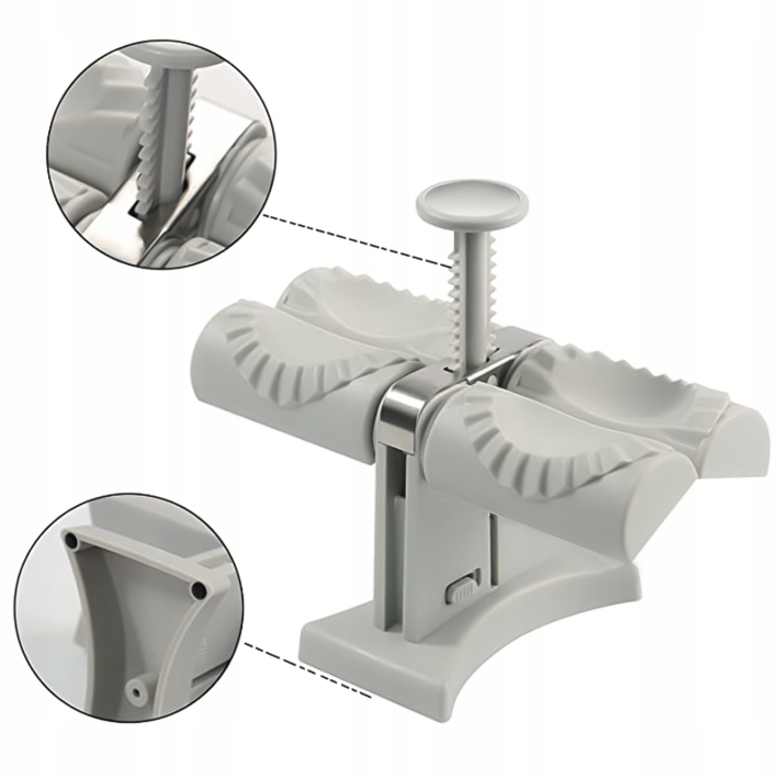 Czy kiedykolwiek próbowałeś robić domowe knedle lub pierogi? Nie, nie ma problemu. Mamy dla Ciebie małą wskazówkę. Dzięki tej ręcznej maszynie potrafisz przygotować prawidłowe, puszyste knedle, i to bezpośrednio z Twojej kuchni. Maszyna wyróżnia się prostotą obsługi, podwójną formą, co umożliwia skrócenie czasu produkcji do absolutnego minimum. Jedyne, co jest potrzebne, to przygotowanie ciasta na knedle, następnie wycięcie z niego kółek o średnicy 8 cm za pomocą form, naciśnięcie przycisku blokady na dole urządzenia, co spowoduje, że formy obrócą się w odpowiednim kierunku, potem umieszczenie ciasta w formach i dodanie nadzienia, naciśnięcie górnego przycisku, co powoduje, że formy obrócą się i knedle się skleją. Tak proste to jest. Nie zwlekaj i delektuj się pysznym smakiem domowych knedli z tą maszyną.