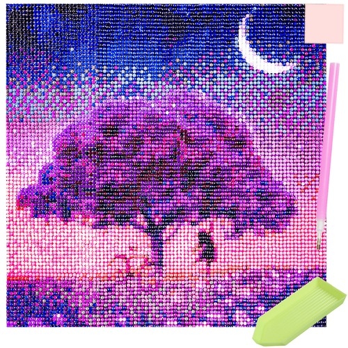 Diamentowy zestaw do haftowania przedstawiający magiczne drzewo, znany również jako malarstwo diamentowe. Ta technika tworzenia mozaikowego obrazu przy użyciu małych kryształów podobnych do diamentów stała się bardzo popularna wśród entuzjastów rzemiosła i artystów. W tej ofercie znajdziesz kompletny zestaw, który pozwoli Ci rozpocząć własną przygodę z haftem diamentowym.