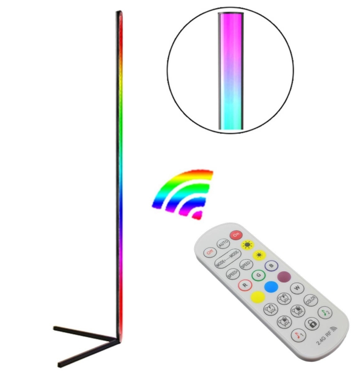 Ta stojąca lampa jest wyposażona w wysokiej jakości diody LED RGB, które zapewniają użytkownikowi doskonałe oświetlenie wnętrza. Lampa ma minimalistyczny design, posiada 3 oddzielne strefy, które można zaprogramować według własnych potrzeb za pomocą pilota. Dzięki zastosowaniu diod LED oświetlenie jest energooszczędne, jednocześnie zachowując wysoką jasność i trwałość. Stabilna konstrukcja na długich nogach jest wykonana z wysokiej jakości, stalowych profili. Lampa ma wbudowany moduł Bluetooth, który umożliwia sterowanie oświetleniem za pomocą dedykowanej aplikacji na smartfonie.