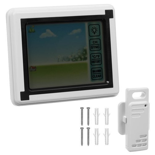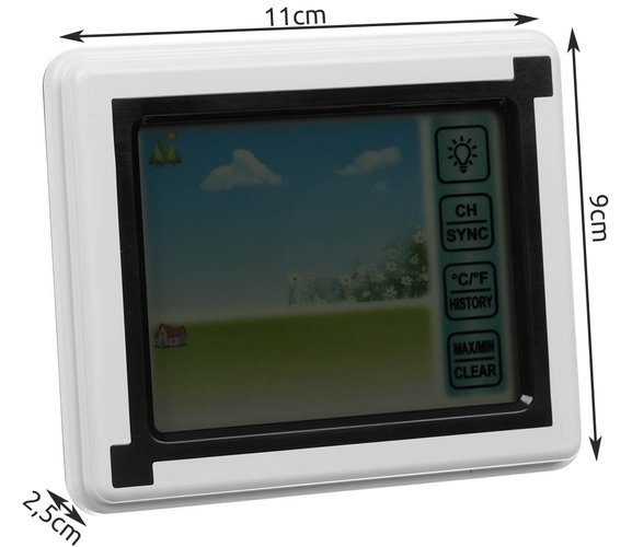 NOWOCZESNA I PRAKTYCZNA - bezprzewodowa stacja pogodowa to nowoczesny i praktyczny dodatek, który ma czytelny wyświetlacz, z którego łatwo odczytasz zmierzone wartości. Urządzenie jest wyposażone w 4 przyciski: podświetlenie ekranu, ch / synch - wybór kanału lub synchronizacja odczytu, stopnie / historia - przełączanie jednostek pomiaru, historia zapisów, max. min./ wyczyść - minimalne i maksymalne zapisy oraz możliwość wyczyszczenia pamięci.