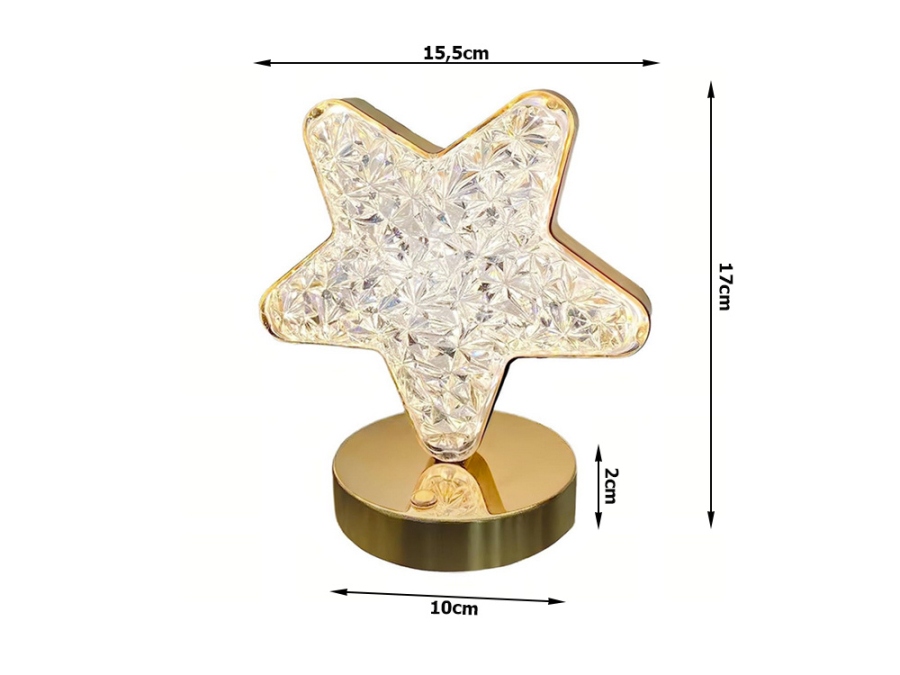 Ta urzekająca nocna lampka w kształcie kryształowej gwiazdy to idealny sposób, aby nie tylko oświetlić swoją sypialnię, ale także ją świetnie ozdobić. Lampka imituje kryształowy design, jest wyposażona w diody RGB LED, co pozwala użytkownikowi wytworzyć niemal magiczną atmosferę według własnych upodobań. Lampka jest zasilana przez USB, co umożliwia łatwą obsługę, na przykład przy użyciu komputera. Oferuje ona szeroki wybór trybów świetlnych, takich jak pulsujące kolory, płynne przejścia kolorów czy delikatne oświetlenie tylko w jednym kolorze. Nie wahaj się i zaopatrz się w tę lampkę stołową o nietypowym designie, eleganckim wykonaniu do swoich domów.