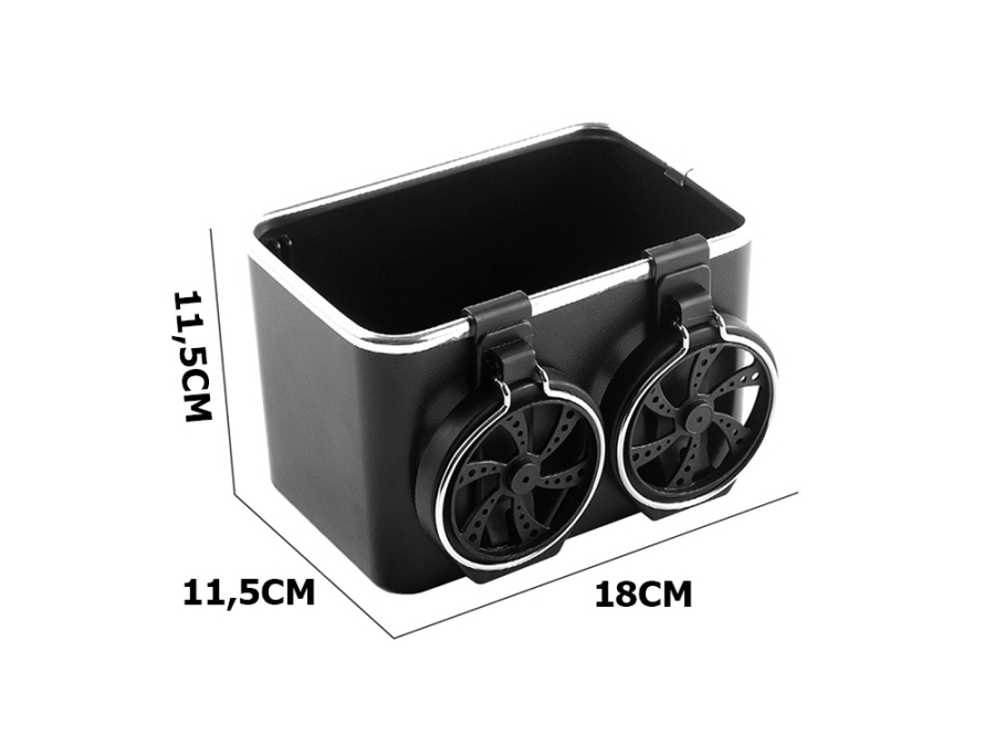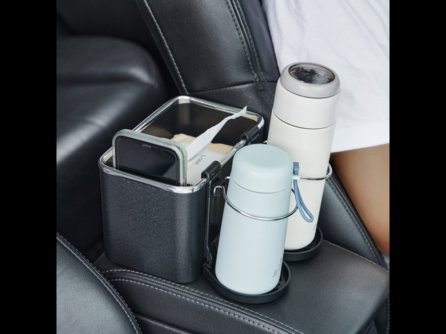 Ten praktyczny uchwyt na napoje do samochodu został zaprojektowany tak, aby pasował do większości pojazdów. Łatwo go przymocować i zdjąć dzięki specjalnemu paskowi na rzep. Uchwyt jest wyposażony w przegródki na napoje oraz przestrzeń do przechowywania, do której można włożyć telefon, chusteczki czy inne akcesoria.