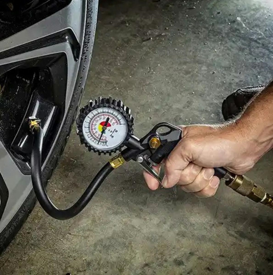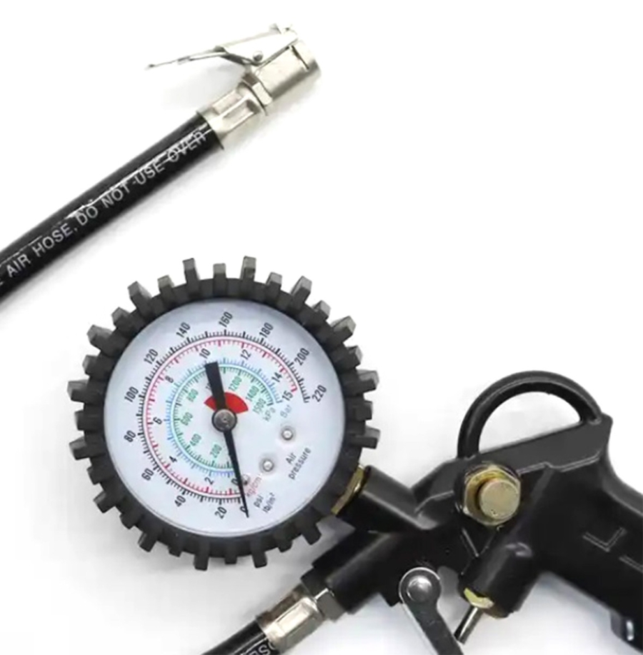 Ten kompaktowy, pneumatyczny pistolet jest przede wszystkim przeznaczony do pompowania opon. Został zaprojektowany tak, aby obsługa była całkowicie prosta i aby nawet początkujący mógł sobie z nim poradzić. Dzięki prostej konstrukcji i przejrzystemu wskaźnikowi będziesz zawsze na bieżąco z aktualnym ciśnieniem w oponach. Pistolet jest wyposażony w wygodny i elastyczny wąż ze standardowym zaworem, co zapewnia komfortowe sterowanie całym urządzeniem.