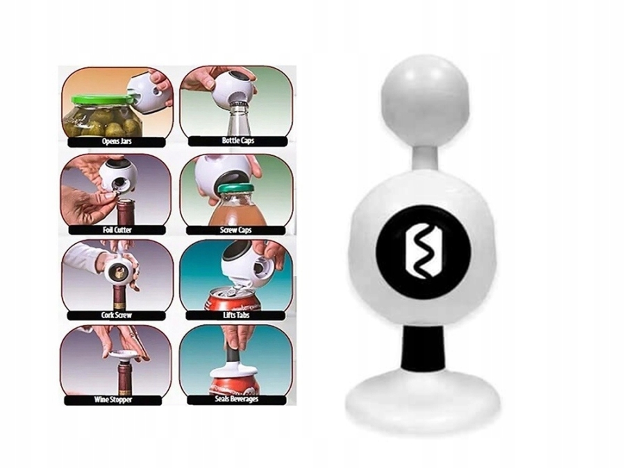 Praktyczny i kompaktowy pomocnik do domu, który zastąpi wiele niezbędnych potrzeb kuchennych. Pomoże otworzyć np.: butelki, słoiki, puszki, kapsle, konserwy szpilką, odkorkować wino.