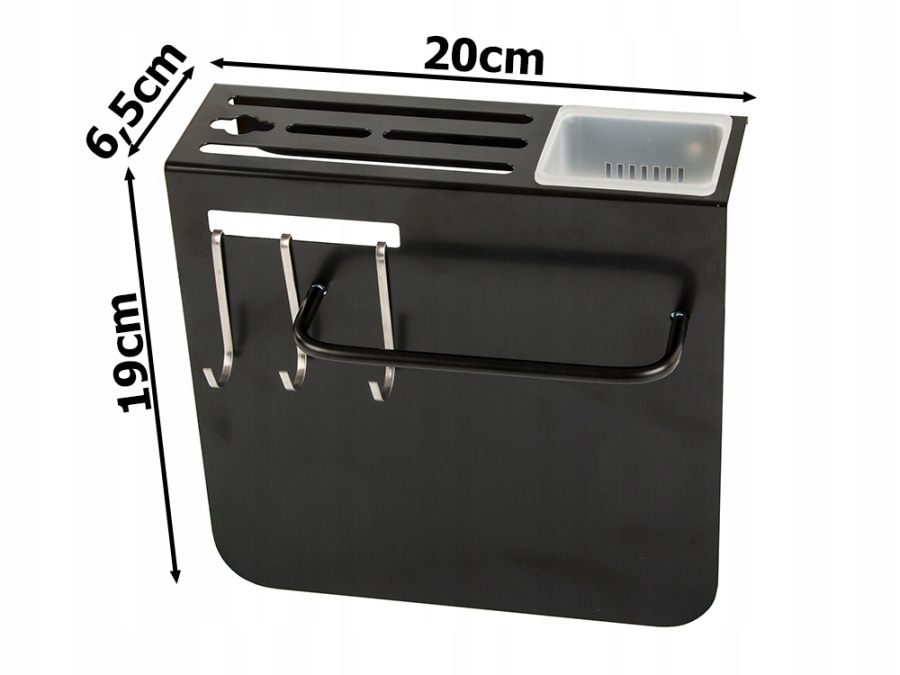 ŚCIENNY KUCHENNY ORGANIZER NA NOŻE CZARNY - 20 X 19 X 6,5 CM