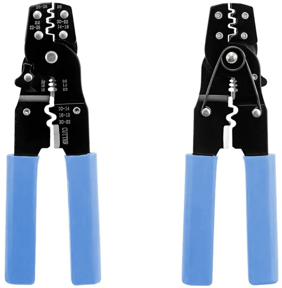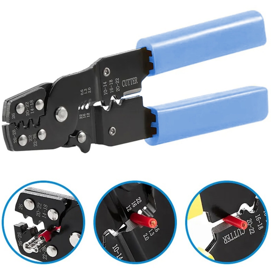 Uniwersalny zaciskacz do wtyczek, złączy nieizolowanych i izolowanych. Wyposażony w dodatkowy nóż do cięcia drutu. Niezbędne wyposażenie każdego instalatora elektryki i elektroniki, przydatne również do typowych zastosowań domowych.