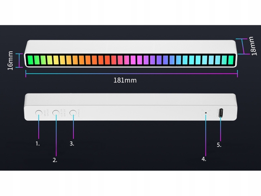 USB LED NEONOWA LISTWA RGB BIAŁA 18 TRYBÓW - 181 X 16 X 18 MM