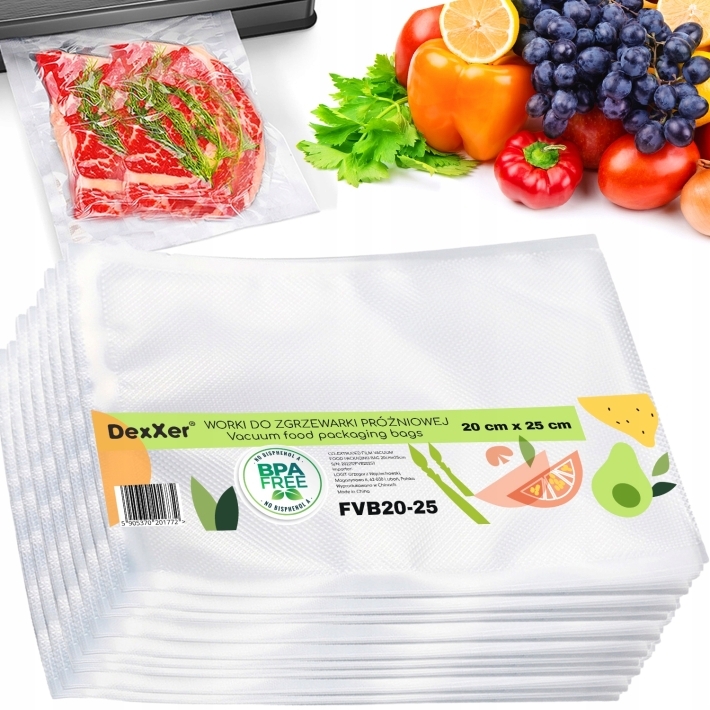 1 zestaw = 10 opakowań produktu Worki próżniowe na żywność 20 x 25 cm 50 szt. (łącznie 500 sztuk)