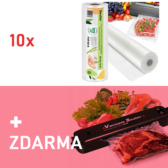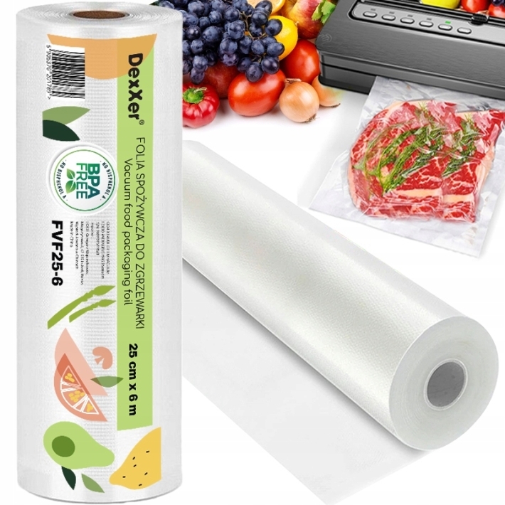 1 zestaw = 10 opakowań produktu Zgrzewalne worki próżniowe na żywność 25 cm x 602 cm (łącznie 10 x 25 x 600 cm)
