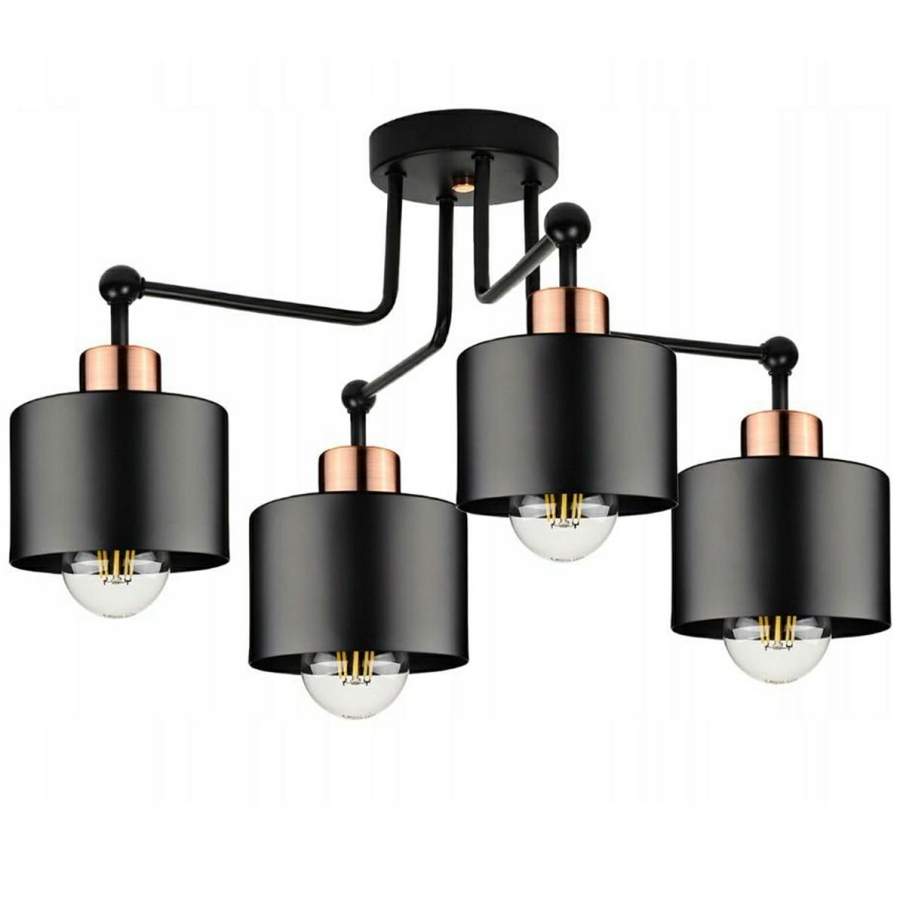 Wspaniały dekoracyjny element - żyrandol z aż 4 punktami świetlnymi. Wszystkie punkty świetlne są wyposażone w standardowy gwint żarówki - E27. Jest to świetny pomysł na zdobienie eleganckich pokoi w stylu loftowym lub rozjaśnianie ciemnych zakątków. Perfekcyjnie pasuje zarówno do klasycznych okrągłych żarówek E27, jak i wszystkich dekoracyjnych z tym samym gwintem.