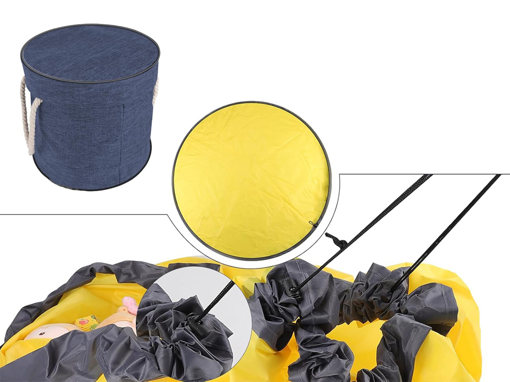 ✅ Mata jest wyposażona w ściągającą tkaninę. Dzięki tej funkcji możesz szybko spakować zabawki do pojemnika i cieszyć się porządkiem na podłodze.