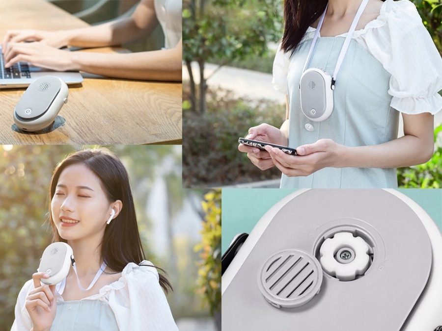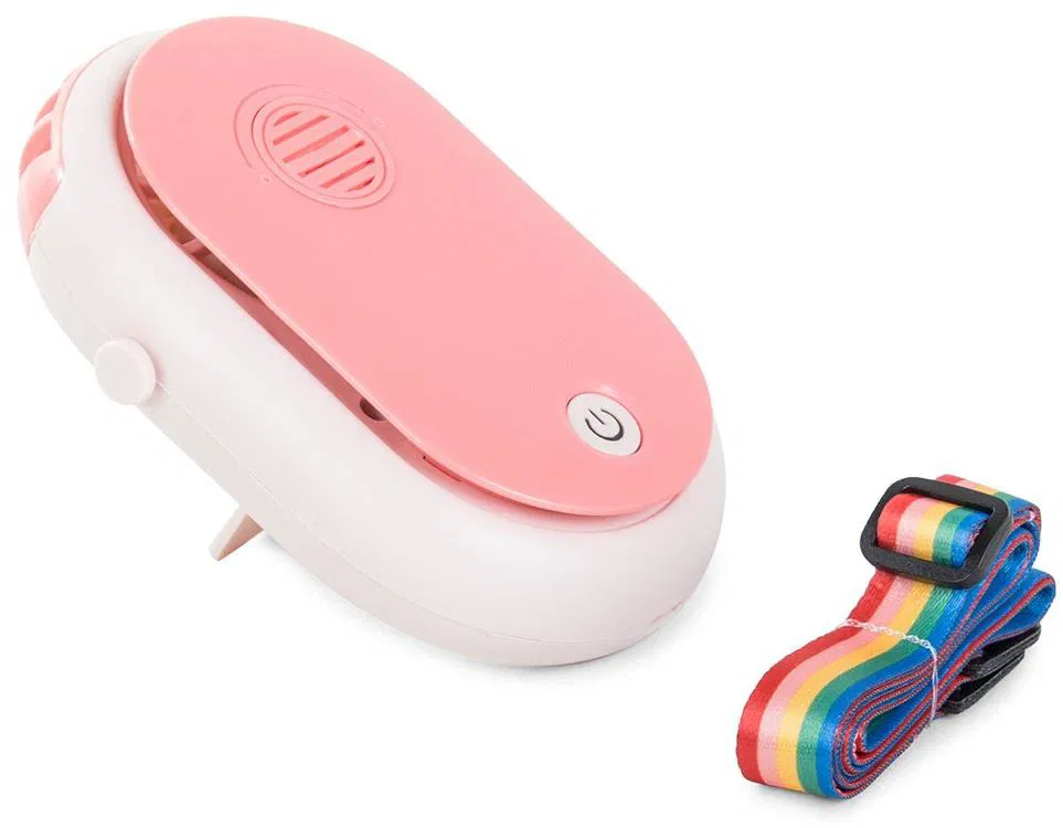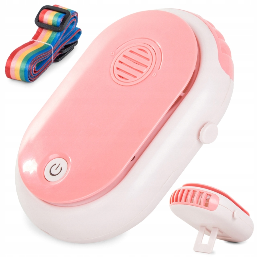 Ma trzy prędkości wentylatora. Zestaw zawiera kolorową tasiemkę, dzięki czemu wentylator można powiesić na szyi i mieć wolne ręce. Szczególnie przydatne podczas biegania lub wędrówek.