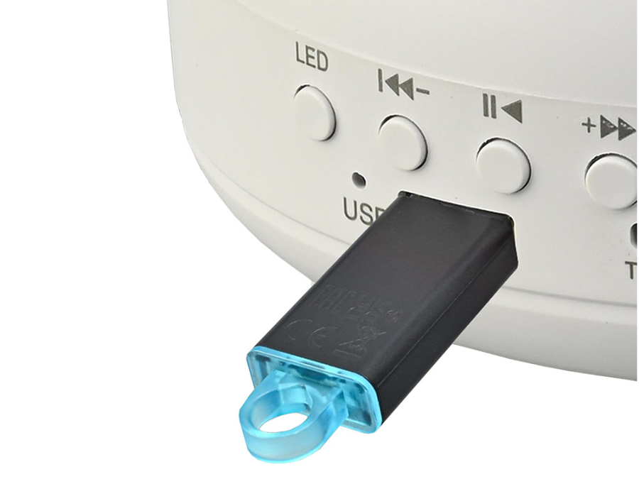 Wbudowany głośnik pozwala odtwarzać swoją ulubioną muzykę lub bajki, które Twoje dzieci dalej kołyszą do odprężonego i spokojnego stanu przed snem.