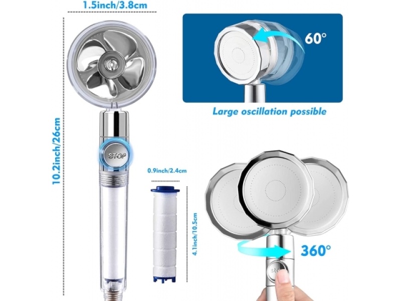 TURBO FILTRACYJNA SŁUCHAWKA PRYSZNICOWA - SREBRNA