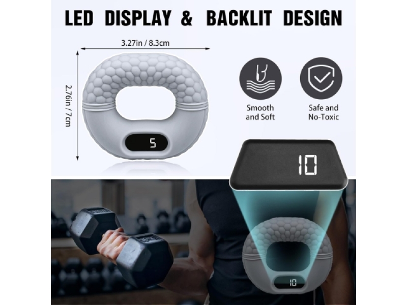- Wzmacniacz chwytu jest wyposażony w wbudowany stoper, który pomoże Ci śledzić postępy i ustalać cele dla sesji treningowych. Utrzymuj motywację i stawiaj sobie wyzwania, aby osiągnąć nowe poziomy.