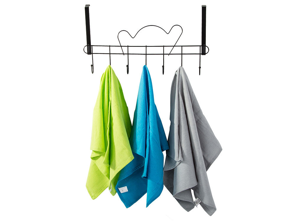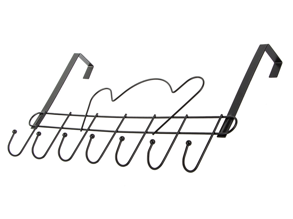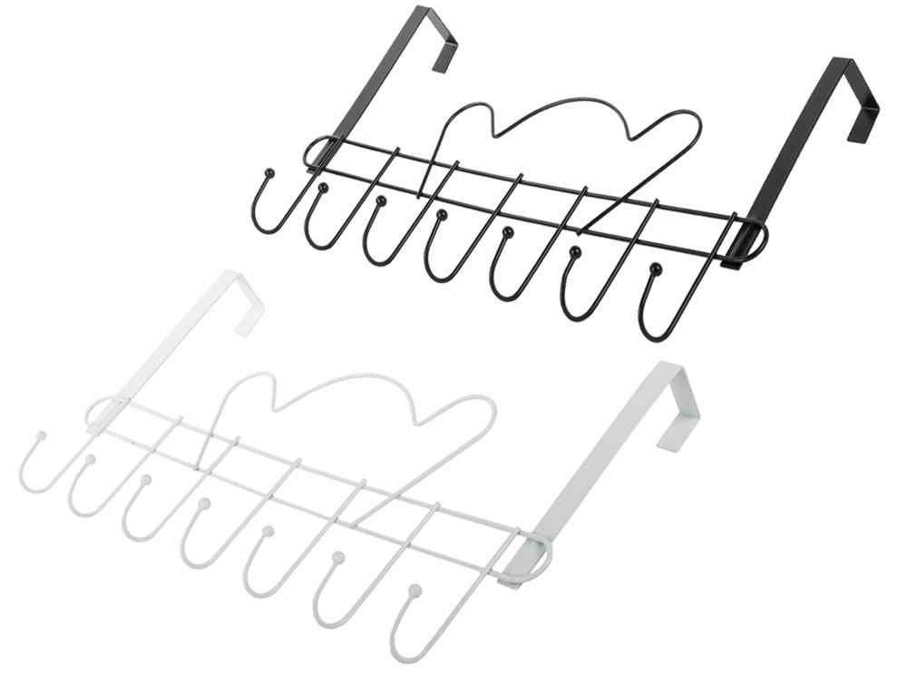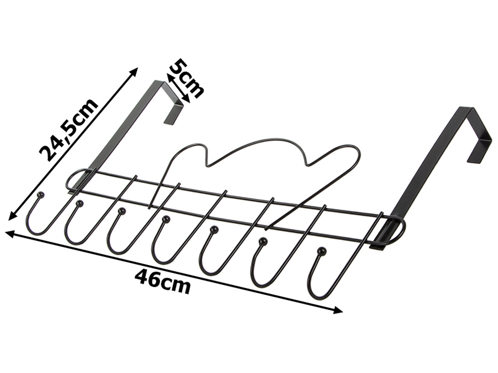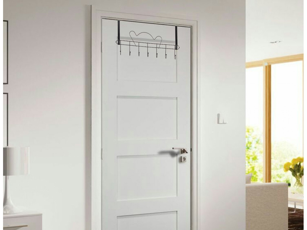 Ten wieszak na drzwi z haczykami jest idealnym sposobem na uzyskanie dodatkowej przestrzeni do przechowywania i odkładania bez skomplikowanego montażu. Wieszak wykonany jest z konstrukcji metalowej, dostosowany tak, aby można go było umieścić na dowolnych drzwiach.