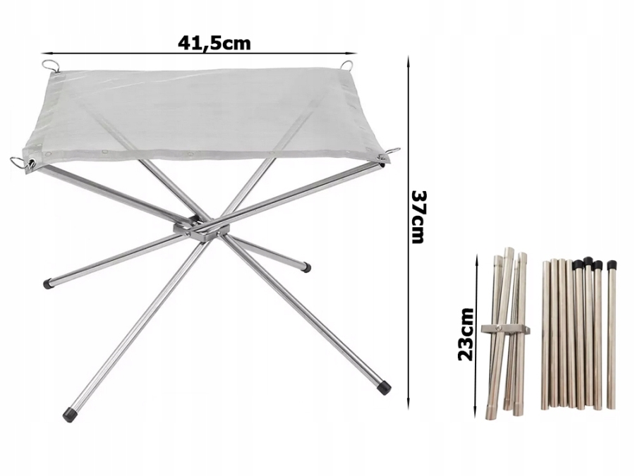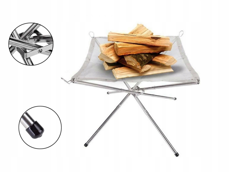 Siatka stojaka jest wykonana z unikalnej stali stopowej, więc wytrzymuje bardzo wysokie temperatury. Siatka ma bardzo małe otwory, aby popiół nie spadał na ziemię.