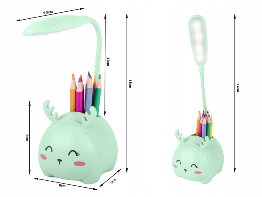 Lampa świetnie sprawdzi się jako organizator na przybory piśmiennicze i jako stojak na telefon.